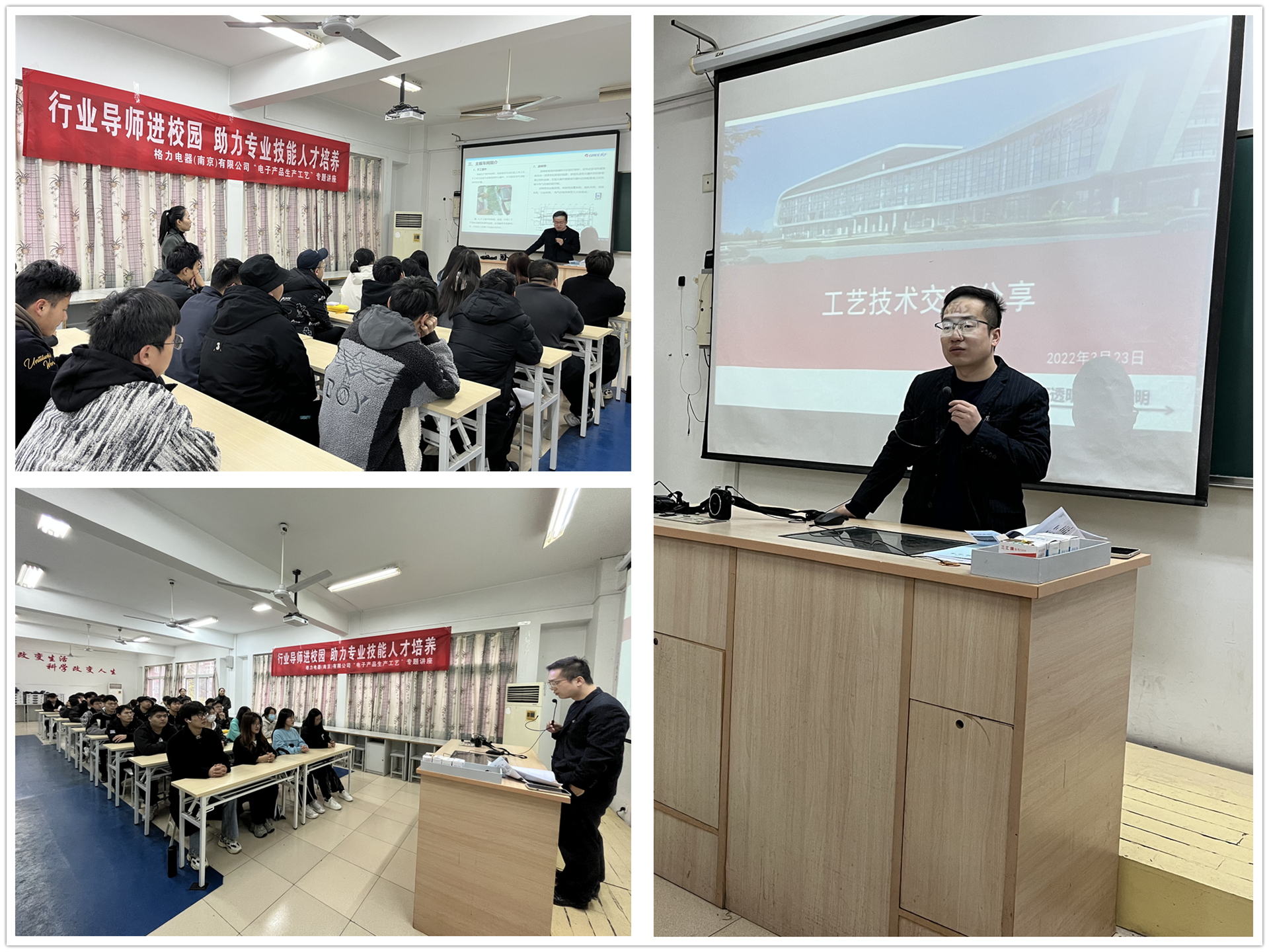 党的二十大报告提出要深入实施人才强国战略,努力培养造就更多新时代高技能人才。3月23日下午,电子与信息技术系邀请格力电器(南京)有限公司工艺设备部部长肖昌芳,来blh漫画 面向2021级电子信息工程技术专业大二学生开展电子产品生产工艺知识专题讲座活动,助力blh漫画 专业技能人才培养。