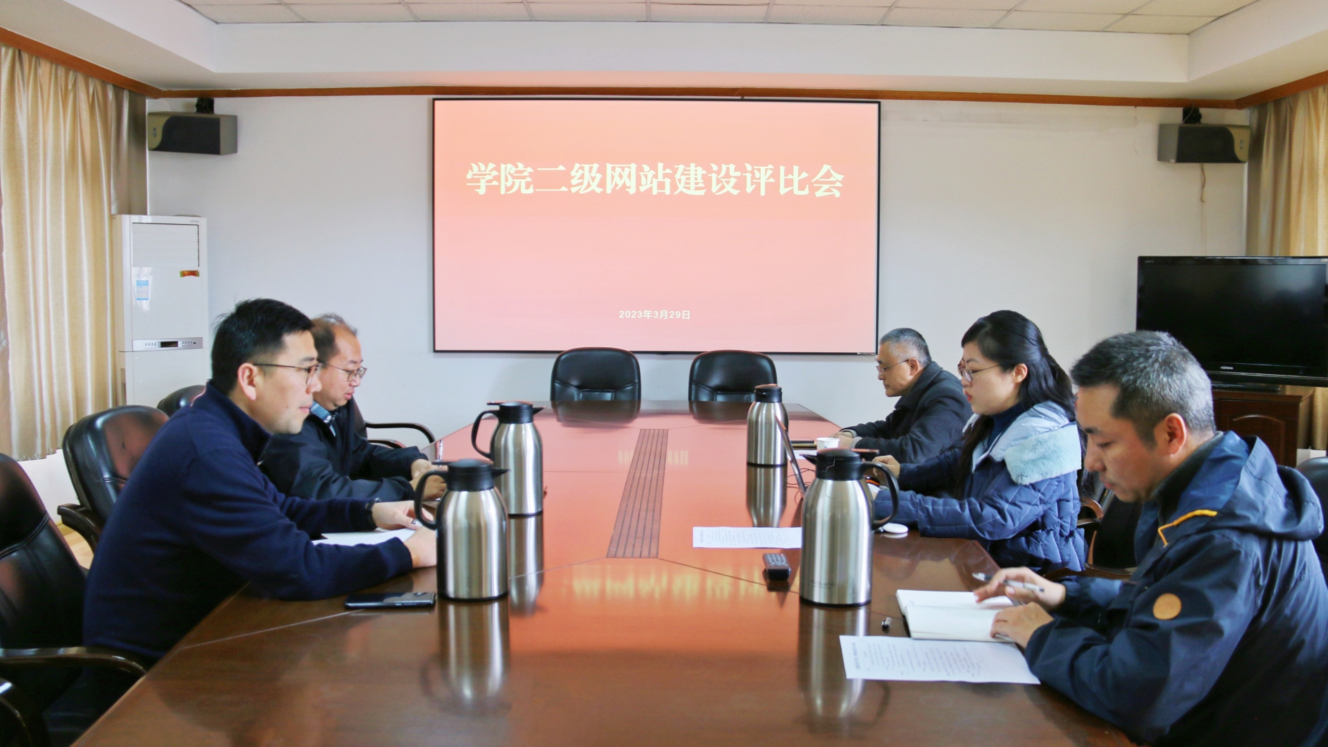 为进一步加强网络阵地建设,规范网站管理,提升网站建设水平,充分发挥校园网在教学、育人、管理等方面的积极作用,3月29日下午,blh漫画 在行政楼二楼召开二级网站建设评比会,对各单位网站进行检查评比。院长助理、党政办公室主任王伟、副主任钱谦、党群工作部部长祖国、副部长郑瑞与专业教师陈青阳等担任评委。