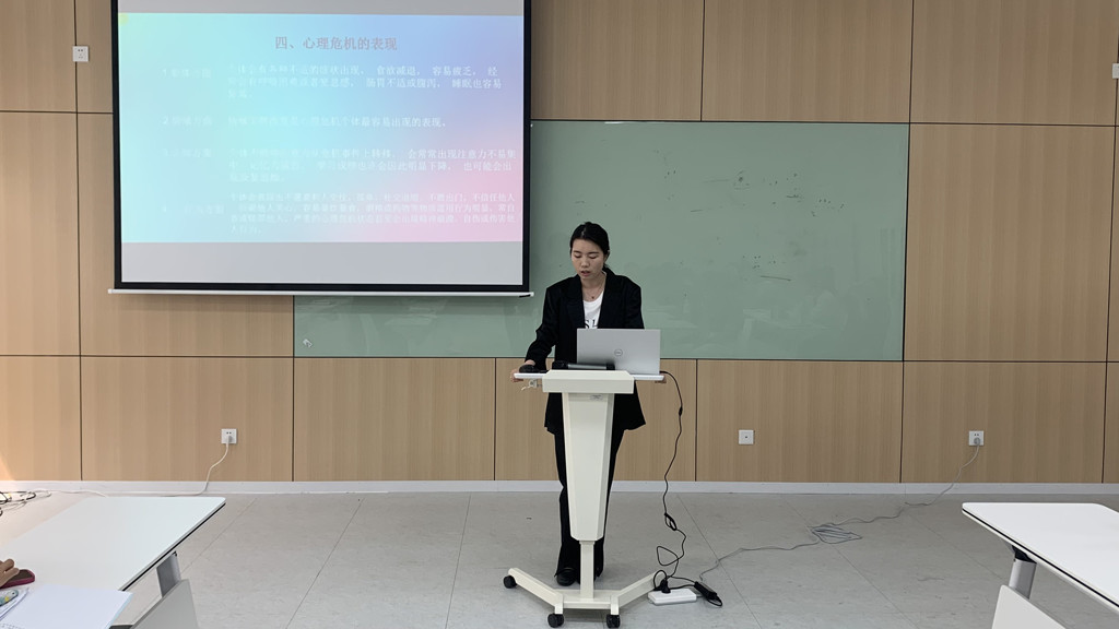 艾诗婷老师以“让心灵走出废墟”为题,从“心理危机概述、大学生心理危机的特征与常见问题、大学生心理危机应对的策略训练”详细讲述了如何辨别常见的心理障碍,同时结合具体案例讲解在遇到心理危机事件时,如何进行正确地、及时有效的心理指导。