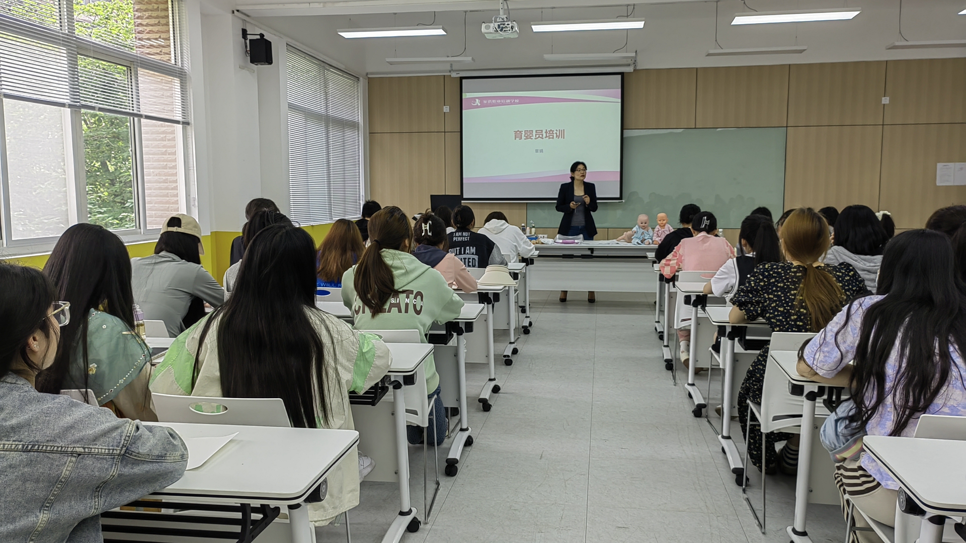 为进一步提高婴幼儿托育服务与管理专业学生的专业技能,有效推进“1+X”证书制度,全面提升学生实践能力。 5月12日,基础教育系开展了首期育婴师、保育员考前培训讲座,来自系内50余名师学生参加了培训。