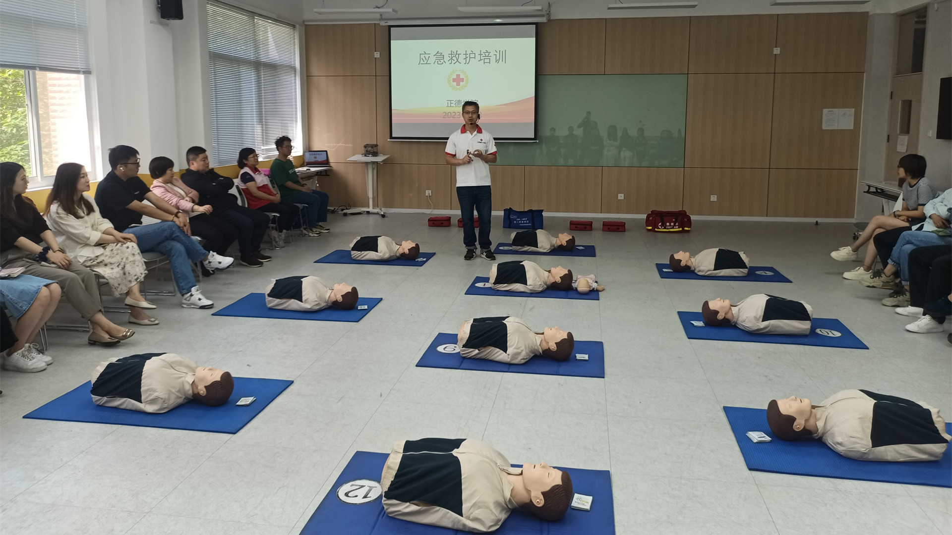 在短短几个小时的学习和模拟急救情境实操训练中,辅导员们认真练习了胸外按压、开放气道、人工呼吸、AED使用、海姆立克法等急救方法,并反复确认急救过程中细节的准确性与有效性。培训现场气氛活跃,学员们纷纷动手实践,进行操作练习。