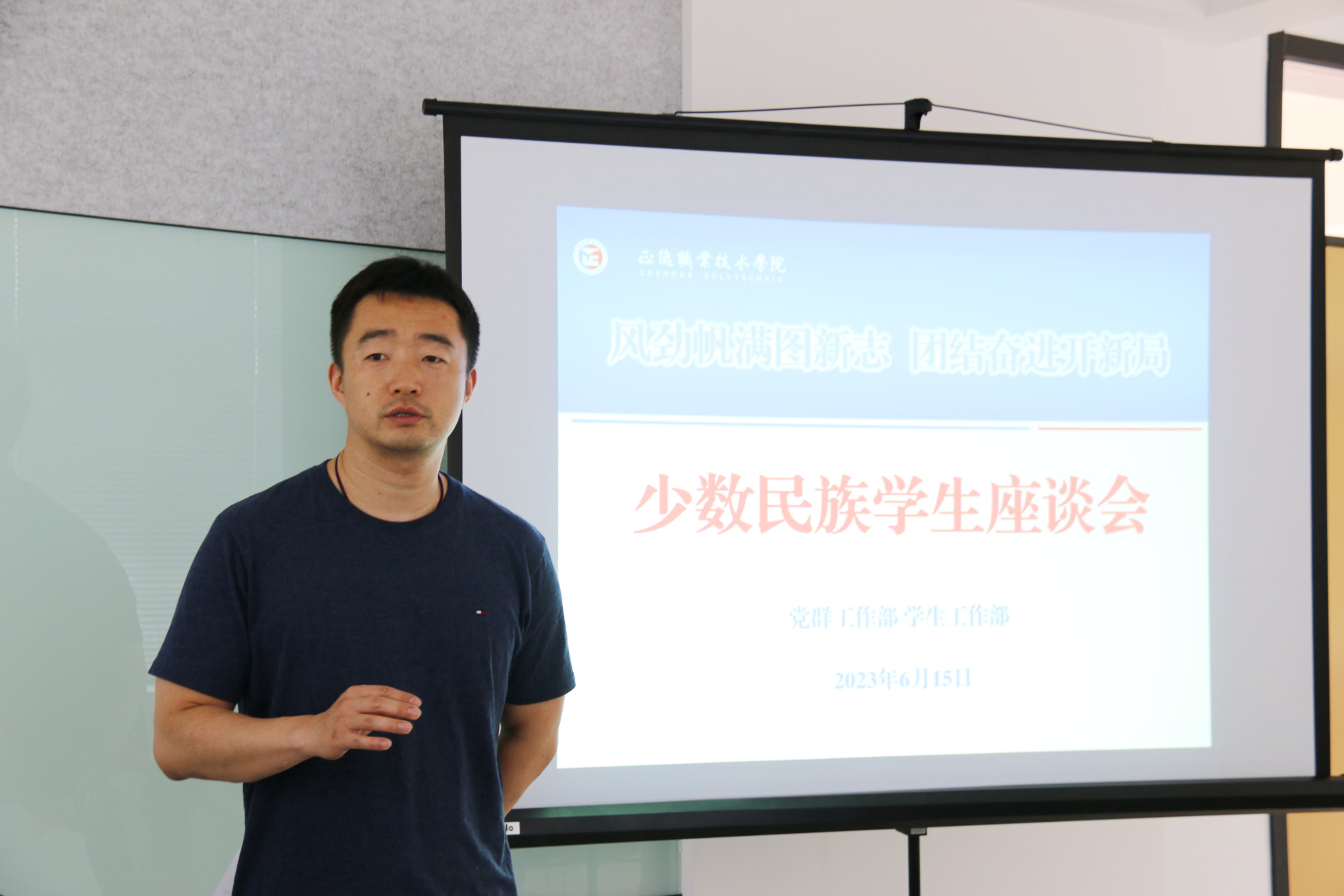 为深入学习贯彻习近平总书记关于民族团结进步工作的重要精神指示,进一步提升少数民族学生教育、管理和服务工作,铸牢中华民族共同体意识,促进各民族学生交往交流交融,6月15日下午,blh漫画 在“一站式”学生社区召开了少数民族学生座谈会,党群工作部副部长周慧、相关老师以及来自7个民族的16名少数民族学生代表参加了本次座谈会,座谈会由学生处副处长毛茂主持。