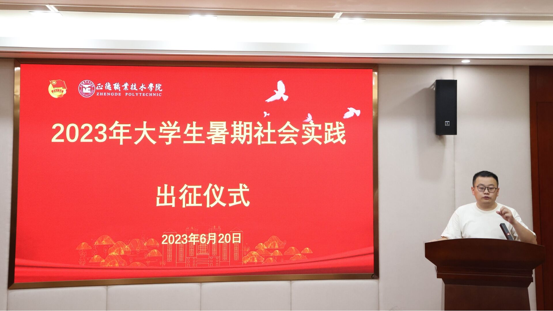 暑期社会实践团队负责人电子与信息技术系魏宇同学代表各实践团队表示要在社会实践中严格要求自己,遵守规章制度,在挥洒青春汗水的过程中展现正德学子的青春风采。