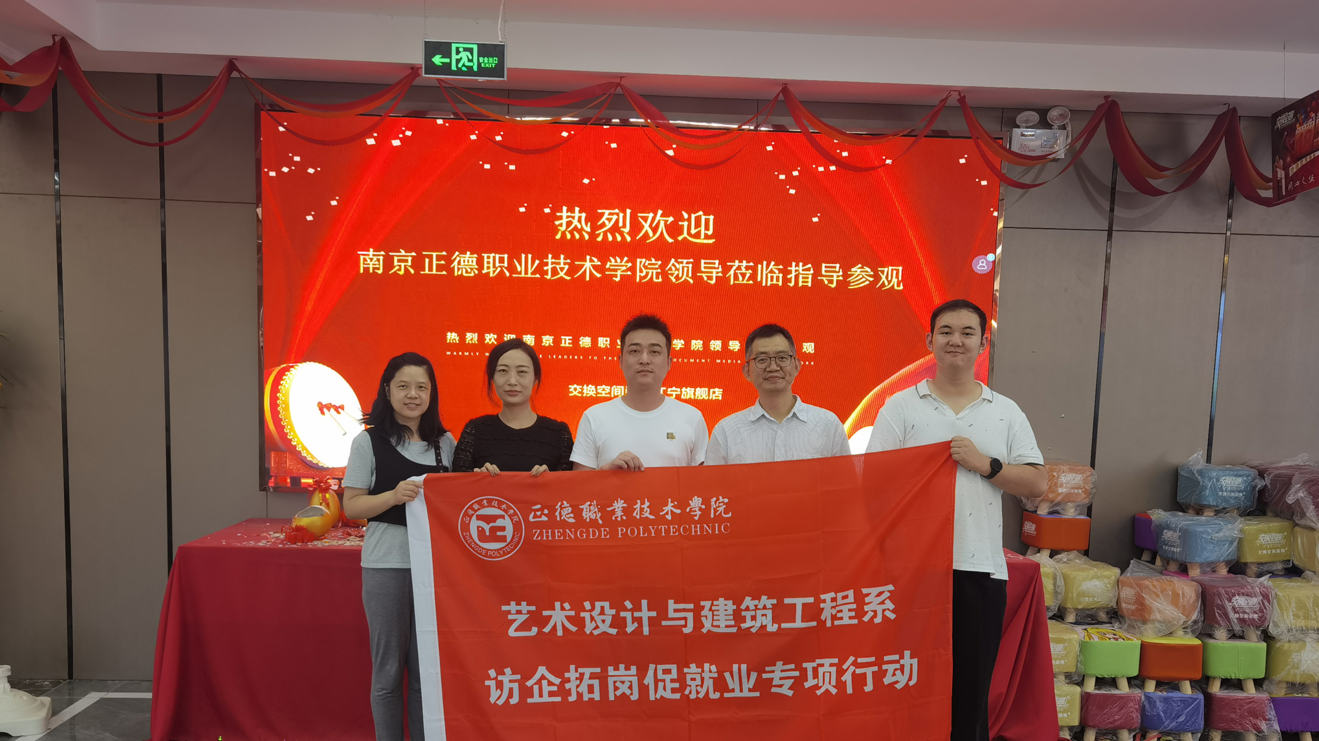 为进一步落实学校访企拓岗促就业专项行动,推进blh漫画 毕业生多维度、高质量就业,9月19日,艺术设计与建筑工程系副主任周卫(主持工作)、杨瀛、吴青、夏正宇深入企业为毕业生开拓就业新渠道,走访了南京交换空间家具有限公司(江宁旗舰店),与总经理戴朝坤进行了合作交流,目前校企双方共同探讨合作协议内容,初步达成合作意向。