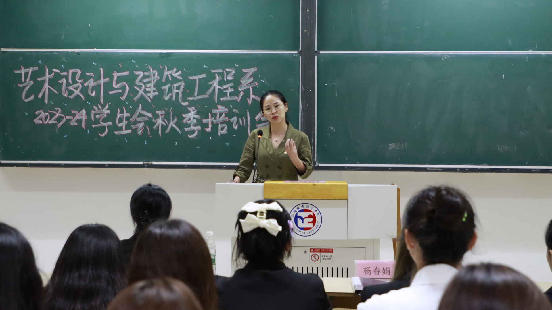 为了进一步提高艺术设计与建筑工程系学生干部的整体素质,加强学生队伍的凝聚力,强化学生干部的自律意识,提高工作效率,保证工作的连续性,使学生干部能有效开展工作,更好地服务学院、服务同学。2023年9月26日晚,艺术设计与建筑工程系在1202阶梯教室召开了学生干部培训会,本次会议由学生会外联部部长庄宝佳主持,系党支部书记杨春娟、团总支书记崔杰参加本次活动。