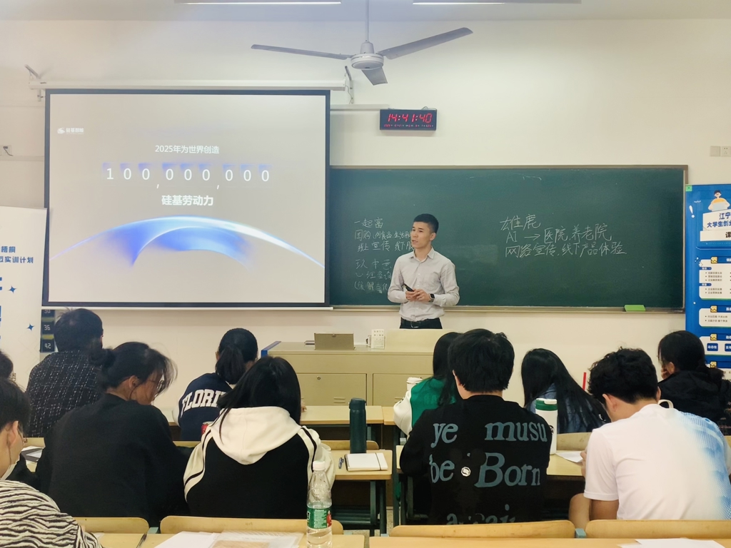 “初创企业如何做好团队管理”主题部分更多偏向于互动交流,让大家充分融入到团队中的每个角色中,找准角色感,发挥自我的价值,以此掌握创业团队管理的基本策略,从而实施有效的团队管理。周振云还邀请到Ai智能领域大咖——南京硅基智能科技有限公司的葛军老师,葛老师以数字人为例,向同学们介绍Ai智能化技术是如何促进商业交互落地的,通过智能触达、智能决策和智能服务,打造以人为本的数字劳动力服务体系。让同学们对Ai智能领域有了新的认识。