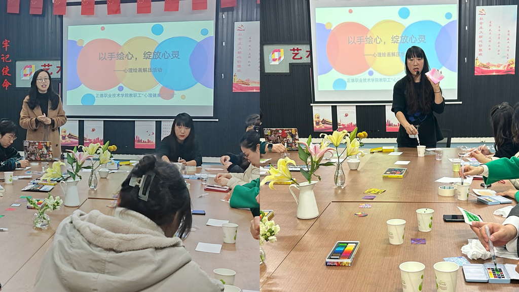 为切实关心关爱blh漫画 教职工身心健康,着力提升教职工心理健康素养,缓解教职工的心理压力,增强教职工的获得感、幸福感和安全感。11月29日下午14点,院工会联合学生处大学生心理健康教育中心在8204教室举办 “‘画’解压力,绽放心灵” 心理健康工作坊活动。本次工作坊邀请blh漫画 艺术设计与建筑工程系艺术传媒专业组专任教师徐嘉嘉担任指导教师,全院20多位教职工参与了此次活动,活动由学生处大学生心理健康中心傅蕴男主持。