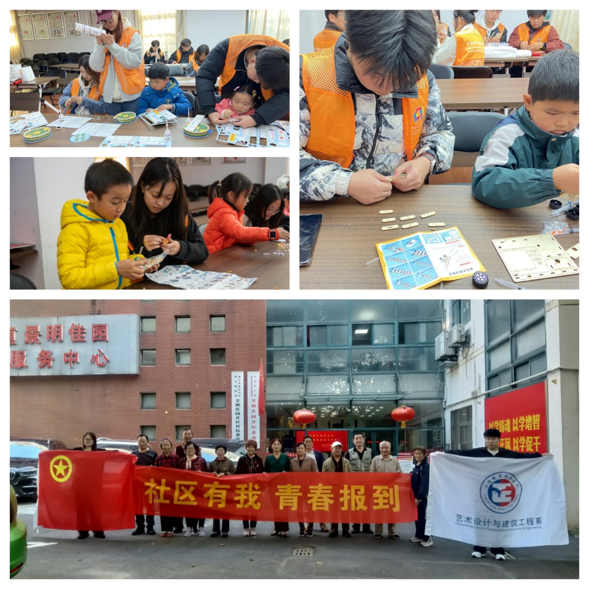 实践教育。艺建系牢牢把握主题教育总要求,积极组织青年学生开展志愿活动,知行合一,在实践中练本领。在校地共建育人项目人,青年学子前往雨花台区景明佳园社区开展了系列志愿服务,11月11日携手社区青少年开展了“我心中的火焰蓝消防安全宣传“主题活动;11月18日,结合“国际儿童日”,青年学子,其中包括“汇聚你我声音、点亮儿童未来”国际儿童日主题志愿活动;11月23日,参加了社区开展的“党建引领为老服务”公益活动;11月25日,带领社区青少年开展了“梦想如帆 逐梦星河”科技志愿活动。积极在青年学生中开展“劳动让生命更有温度”的系列活动,搭建劳动实践平台,创新劳动实践教育形式。