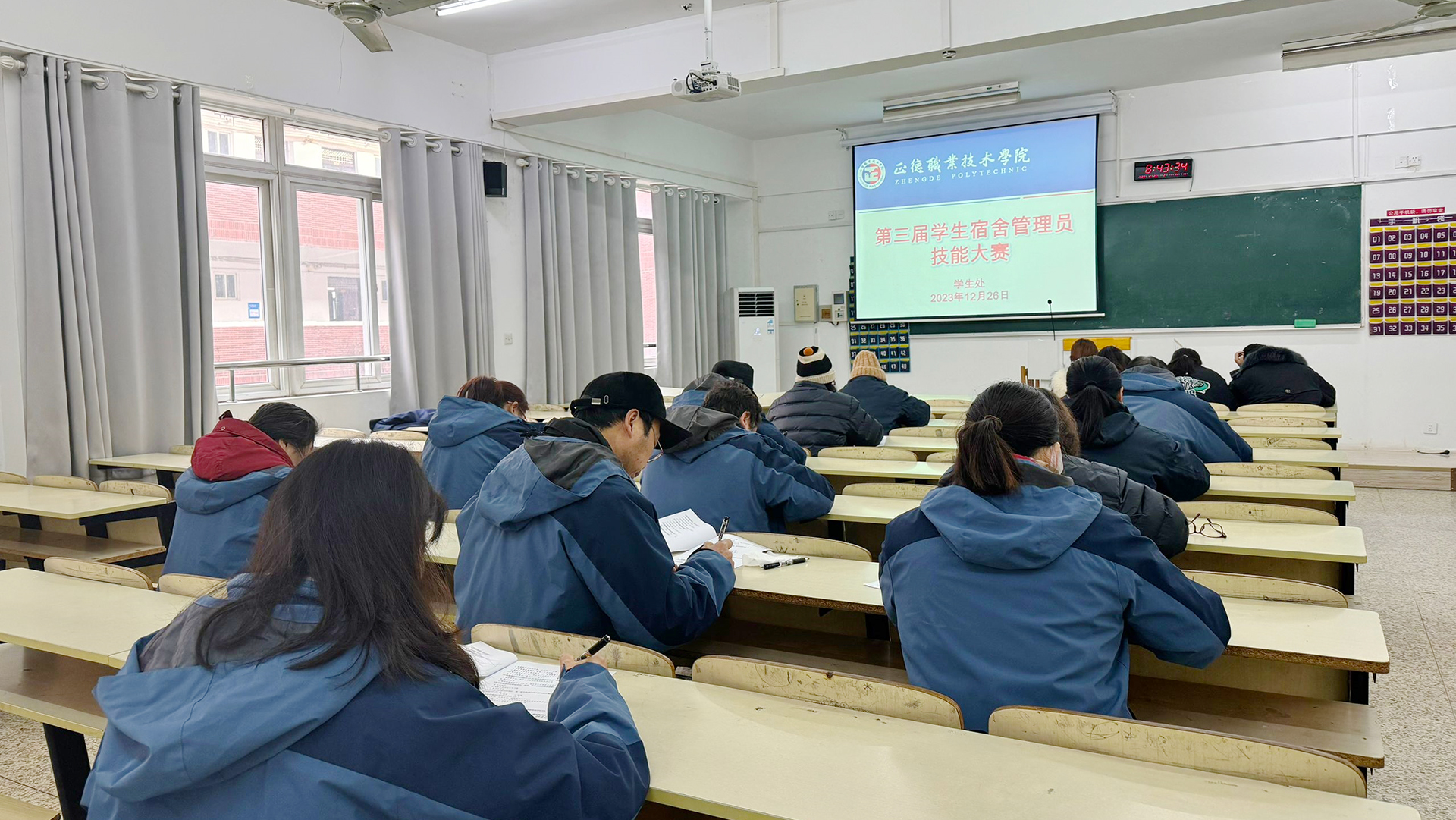 为了进一步提升学生宿舍管理员的专业技能和业务素质, 12月26日上午,学院在2206教室举行第三届学生宿舍管理员技能大赛。学生处、航宇物业、三维达物业相关负责人出席活动,学生处副处长毛茂主持比赛。
