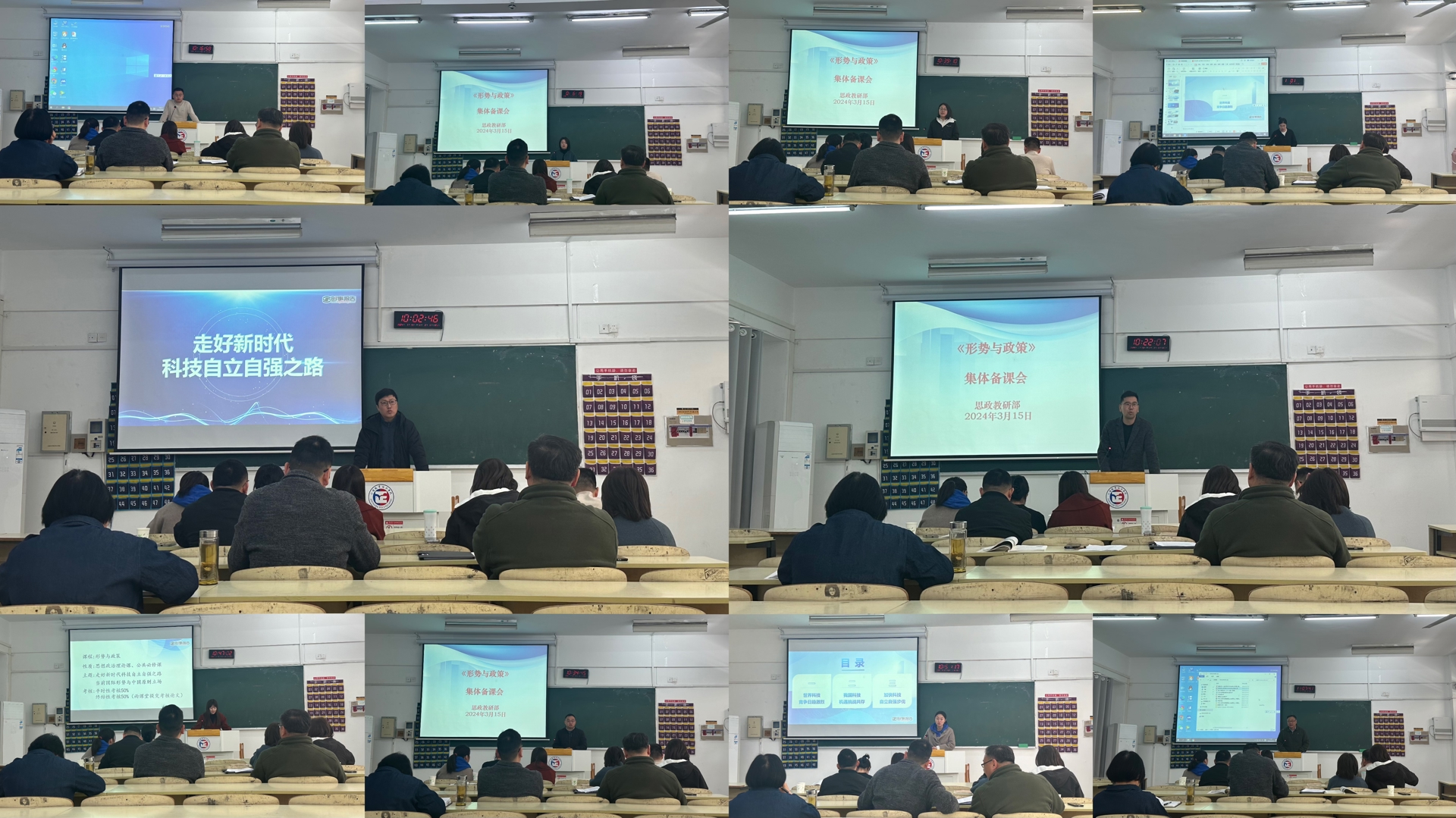 为贯彻落实教育部对高校大学生课程的教学要求,进一步加强课程团队建设,保障本学期教学工作的顺利开展,blh漫画 于3月15日在2206教室开展《形势与政策》集体备课会。副院长江爱华、思政教研部副主任(主持工作)李颖、思政名师工作室苗秀娟教授、彭爱华教授及思政教研部全体教师进行现场观摩与指导。