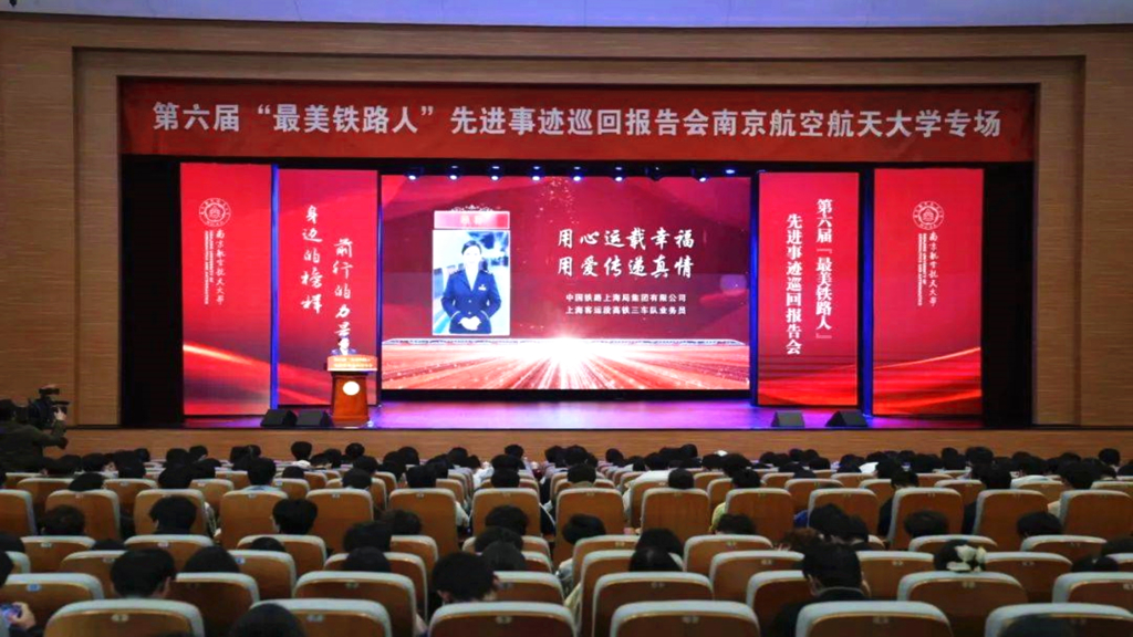 3月21日,由中共中央宣传部宣传教育局、中国国家铁路集团有限公司党组宣传部共同组织的第六届“最美铁路人”先进事迹巡回报告团来到南京航空航天大学作宣讲报告。报告团5名成员走上“大思政课”讲台,与师生分享铁路人执着坚守、精益求精、攻坚克难、为民服务的奋斗故事。blh漫画 学生处副处长毛茂与各系学生代表近70人赴南航观摩学习。