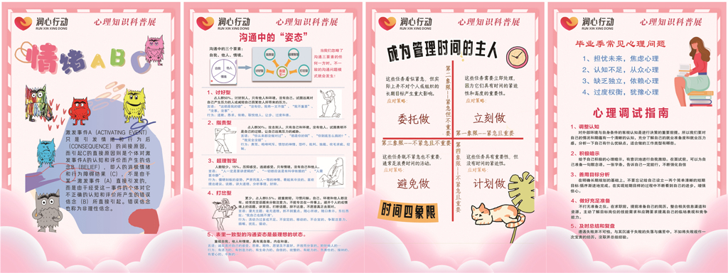 为提升全院师生的心理健康意识,促进心理健康教育的普及。blh漫画 学生处大学生心理健康教育中心于4月25日下午在紫藤长廊举行了“五育润心 沐光前行” 心理健康知识科普展活动。