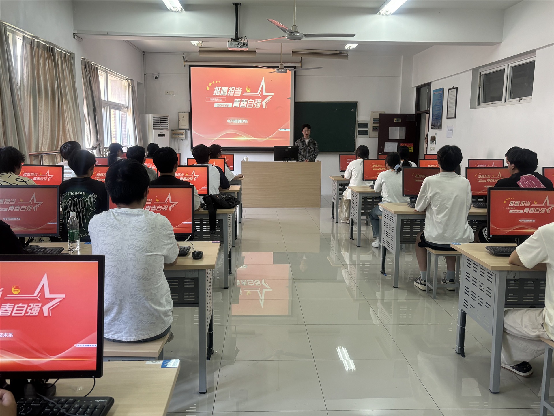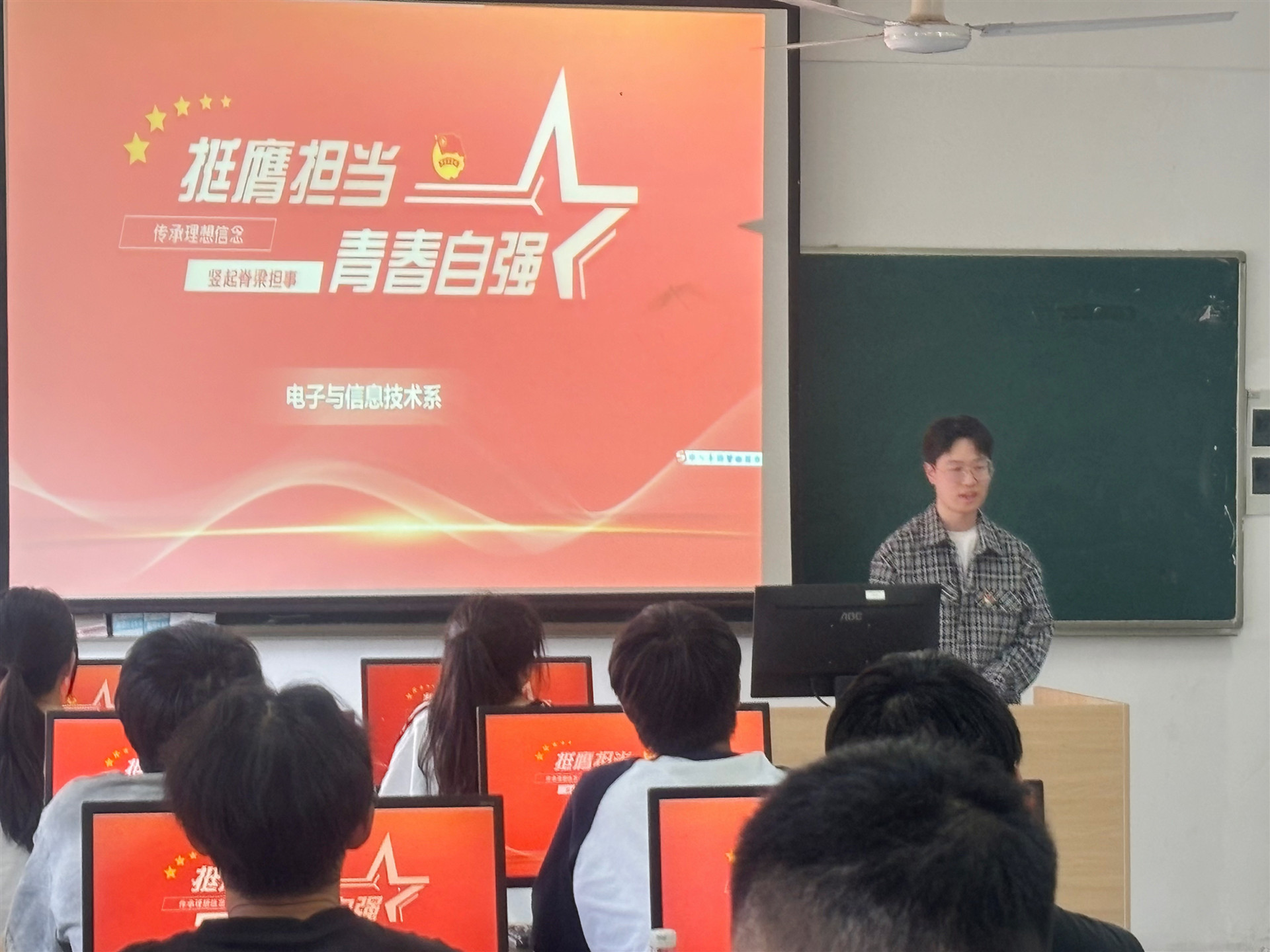 为引导青年学生进一步坚定理想信念,以榜样引领前行,用奋斗成就梦想,2024年5月8日,电子与信息技术系在6305教室开展“榜样的力量”微党课暨优秀党员校友经验分享会。电子与信息技术系党支部书记赵欣、组织委员刘敏婧、团总支书记何华智,2022级、2023级学生代表及入党积极分子等参加活动。