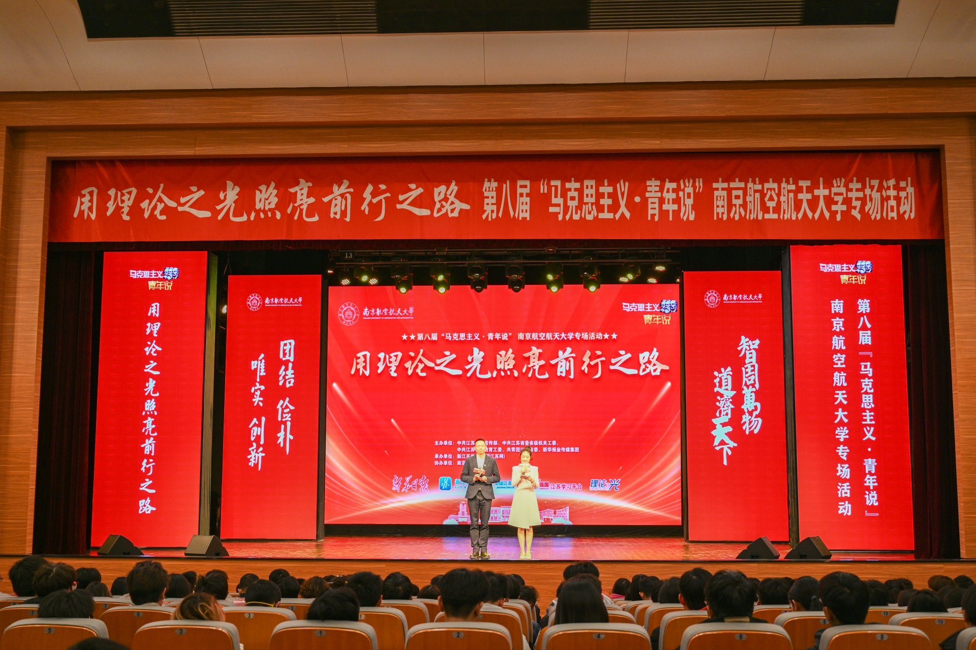 “科技强国,有我!民族复兴,有我!”12月20日,由省委宣传部、省委省级机关工委、省委教育工委、共青团江苏省委、新华报业传媒集团共同主办,新江苏传媒(中国江苏网)承办的第八届“马克思主义·青年说”活动走进南京航空航天大学。为团员青年们带去一场理论盛宴,引导他们在新时代的浪潮中,深刻领悟科学家精神,肩负起推动科技创新、实现科技强国的责任使命。我院团委副书记魏兴彪带领学院第十四期“青马工程”学员和系班团学骨干共150余人参加此次活动。