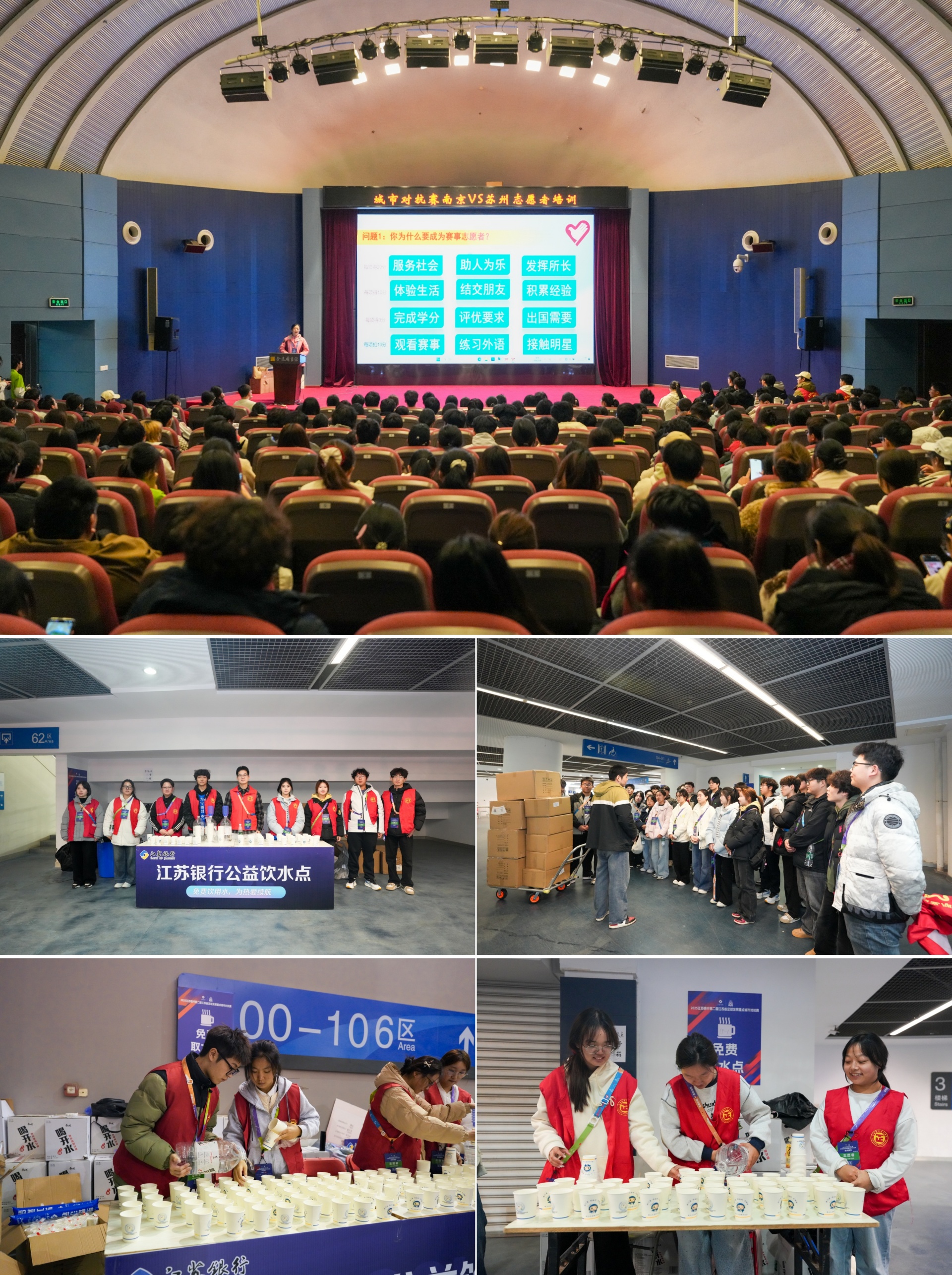 11月22日晚,由江苏省体育局主办,南京、苏州体育局及省足协等联合承办的第二届江苏省足球发展重点城市对抗赛在南京奥体中心拉开帷幕,6万余名球迷现场助威,经过90分钟鏖战,苏州队客场3:0南京队取得胜利。当全场目光聚焦赛场拼搏的球员时,来自我院的84名志愿者,早已化身“赛事守护者”,用行动为这场比赛注入温暖力量。