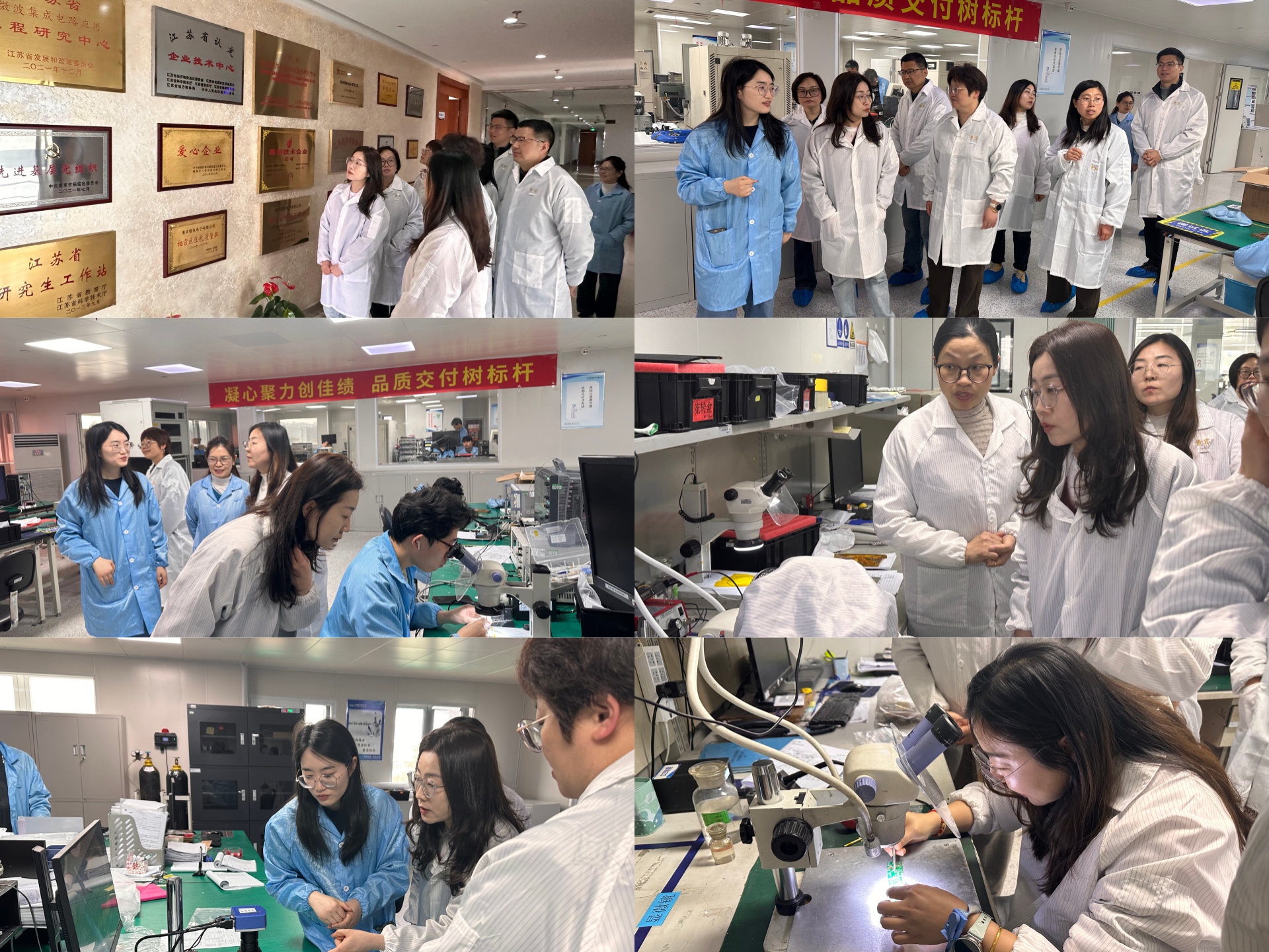 南京恒电人力资源部部长、办公室副主任令狐萌,工艺工程师孙红怡与招聘经理石玉婷热情接待了刘佳一行。在令狐萌陪同下,刘佳一行先后参观了企业试验区、生产车间及研发中心实验室。老师们在车间现场体验了电装实操,与一线技术人员深入交流。通过实地走访,刘佳一行对企业微波混合集成电路生产流程、微组装技术应用及严格的质量管控体系有了直观了解,纷纷对企业先进的生产工艺以及年轻化、高学历的人才队伍结构给予高度评价。