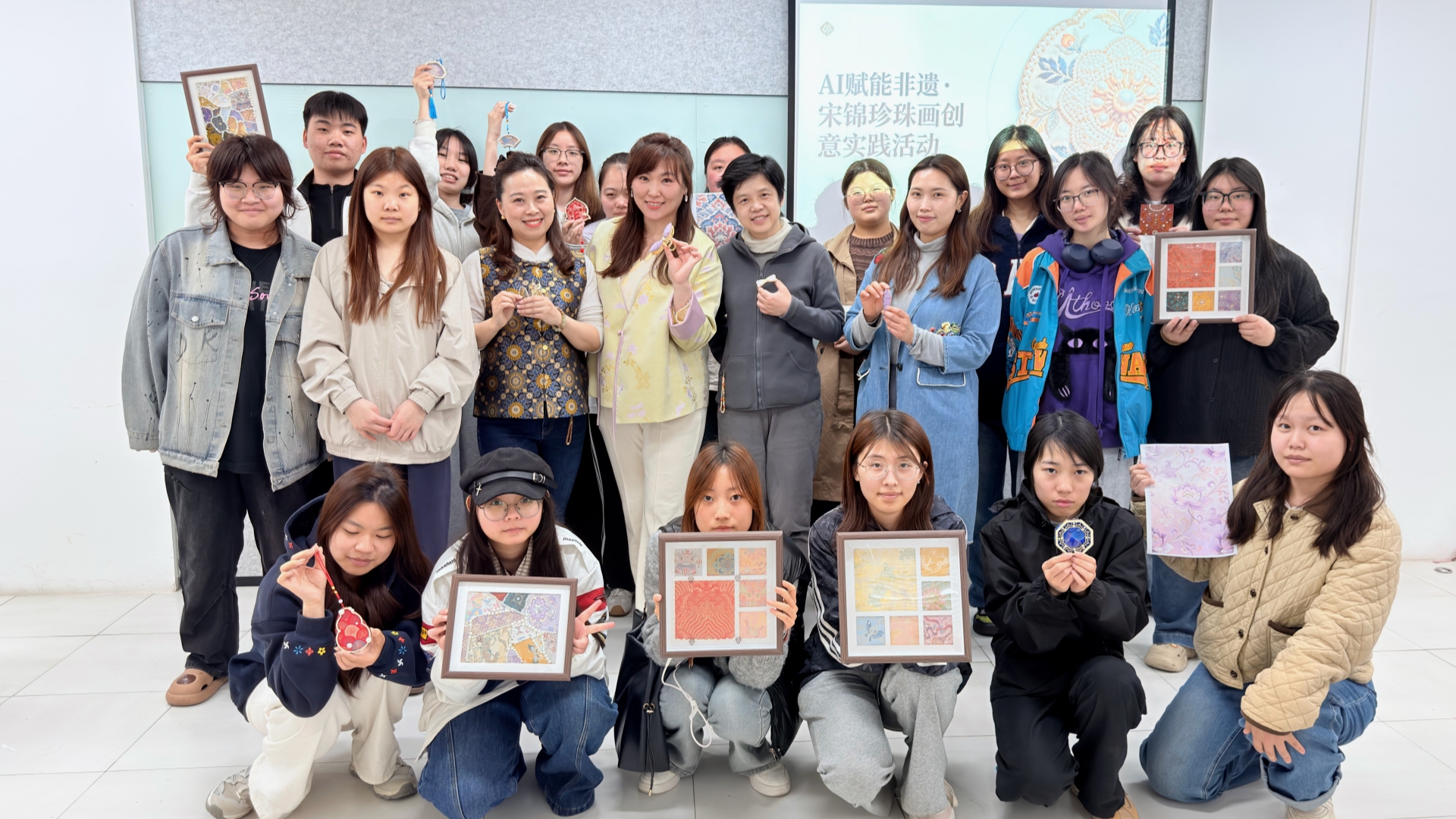 为传承中华优秀传统文化,推动非遗文化与现代科技深度融合,4月16日中午,blh漫画 “一站式”学生社区举办了一场别开生面的“AI赋能非遗·宋锦创意实践”活动,基础教育系、艺术设计与建筑工程系师生代表参加此次体验活动。