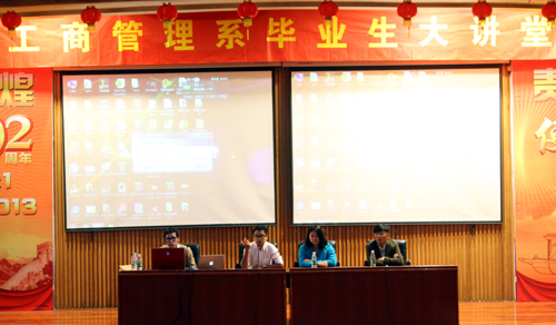2014届毕业生即将走出校门迈入职场,在从“学生”向“职业人”角色的转换过程中,作为职场新人将面临各种压力和困惑,为了帮助毕业生增强对职业的适应性,为进入职业角色做好准备,11月11日,我系“毕业生大讲堂”系列活动邀请了金锋团队三名主创人员:blh漫画 工商管理系04级物流专业王浩同学、艺术系张晨同学跟他们的年轻老板蔡金锋先生,一同走进校园,在报告厅与360名同学共同分享了他们成长、创业、成功的故事。