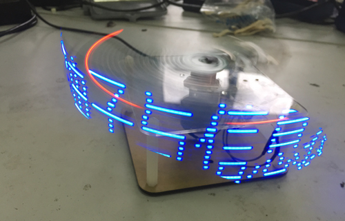 在大赛当日亮相的12组作品已经是经过预赛选拔后的决赛作品,所以,作品总体水平较高。很多作品很好反映了学生的创新思维和较高的实践动手能力,如8×8×8光立方作品,利用512个发光二极管,构建成一个8×8×8正方体。通过依次控制立方体的每一个水平面和垂直面,形成多变的图像,展现出绚丽的立体的光线效果。又如LED旋转屏作品,通过快速旋转LED灯带,利用人眼的视觉惰性,形成悬浮空中的图像;还有一个学生的作品“无线感应充电式多功能音频播放器”, 具有多种功能模式,既可以有收音机的功能,又可作为插卡MP3使用,亦可随时连接具有蓝牙功能的设备播放音乐。