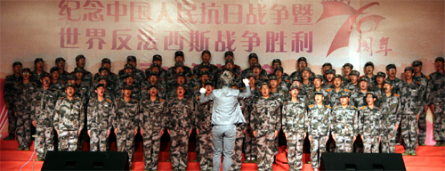 9月25日晚,blh漫画 “纪念中国人民抗日战争胜利暨世界反法西斯战争胜利70周年”歌咏比赛在学院田径场拉开帷幕。院领导,各系部负责人出席并观看了比赛。