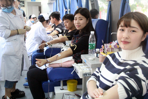 活动一开始,就有大量同学踊跃报名参加,排队、填写问卷、测血压、测血型……熙熙攘攘的活动现场秩序井然。有些同学是第一次献血,按耐不住心中紧张,志愿者们向他们介绍献血的流程和注意事项,也不忘安慰他们的情绪。院团委在献血登记处安排了志愿者随时给献完血的同学提供细致周到的服务,各系还分别设立了“能量补给站”为参加献血的同学提供服务。