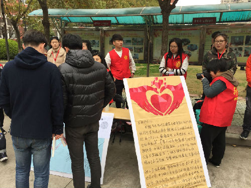 3月9日上午11点,虽然室外的温度接近零度,但学院食堂门口却让走过的师生感到暖意十足,blh漫画 艺术设计与建筑工程系团总支在这里举行“爱心点燃希望,真情传递温暖”活动,号召师生们向该系张衍帅同学献爱心。