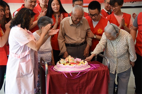 上午8点,志愿者们历经一个多小时的车程来到金色夕阳敬老院,在学生会主席季海奎部署任务后,纷纷投入工作,搀扶老人们来到敬老院的大厅,为近期过生日的31位老人庆生。志愿者们还准备了文艺节目送给老人,93岁高龄的南京大屠杀幸存者谢桂英老人还现场为大家演唱红歌《映山红》,敬老院里萦绕着欢声笑语。江苏卫视《幸福老年》节目组也来到现场,庆生结束后采访blh漫画 学生会主席季海奎与学生会干事王一鸣同学,询问历年来经济与管理系志愿者在金色夕阳敬老院志愿服务情况。