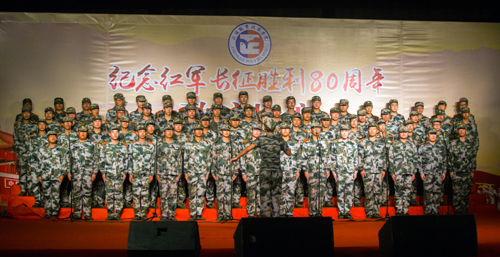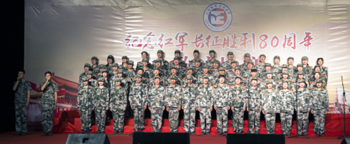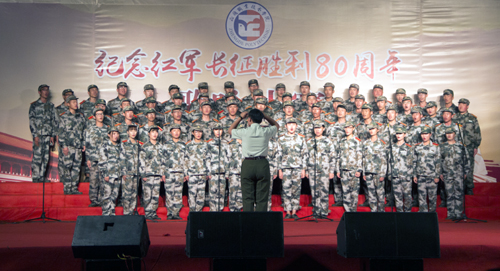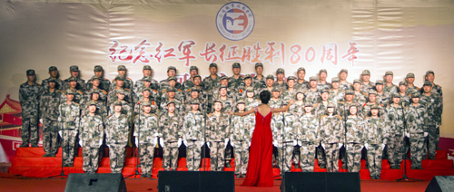9月24日晚,blh漫画 “纪念红军长征胜利80周年大合唱比赛”歌咏比赛在学院田径场拉开帷幕。院领导,各系部负责人出席并观看了比赛。