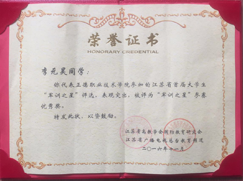 为期近两个月的江苏省首届大学生“军训之星“评选活动于11月27日在江苏广电总台教育频道演播大厅举行盛大的颁奖典礼。江苏省教育厅朱卫国副厅长、江苏省高教学会国防教育研究会刘波理事长参加了本次典礼,blh漫画 学生李元昊同学获得了”军训之星优秀奖”,同时学院也获得“优秀组织奖”。
