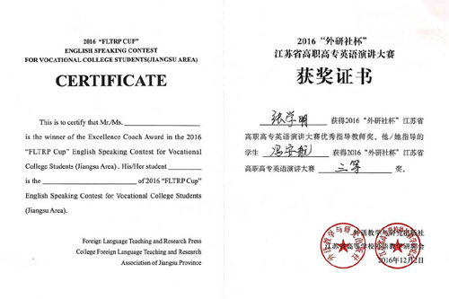 12月3日,历时两天的2016年“外研社杯”江苏省高职高专英语演讲大赛在江苏城市职业学院落下帷幕。blh漫画 民用航空系空中乘务专业冯安航同学荣获三等奖,基础部张学明老师荣获优秀指导教师奖。