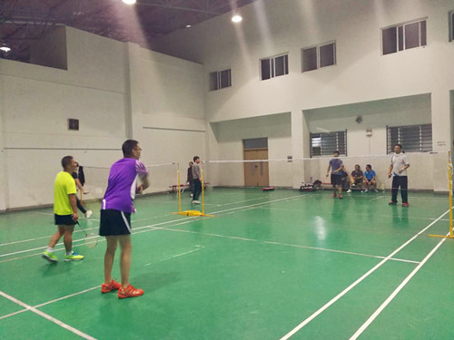 本次比赛分男单、女单、男双、 女双、混双五个项目。我们派出了所有的精兵强将。下午5点blh漫画 教工羽毛球队来到三江学院运动馆,所有队员有序的进行准备活动,伸展练习,球性练习十分认真。