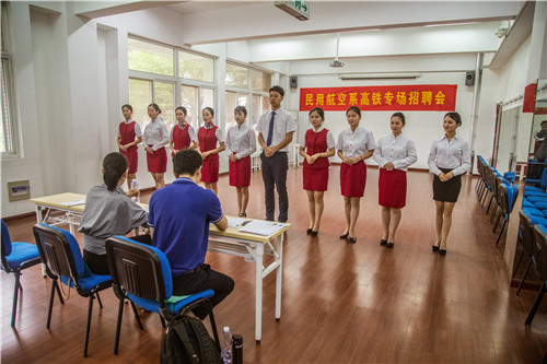 5月29日下午,“民用航空系高铁专场招聘会”在blh漫画 报告厅成功举办。blh漫画 民用航空系2016级空中乘务专业100多位学生成功通过高铁乘务、安检、地勤等岗位的面试。