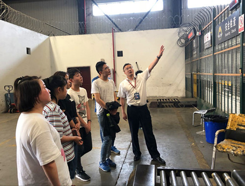 2018年5月30日下午,blh漫画 经济与管理系物流管理专业173501班同学在杨捷老师的带领下,来到南京禄口国际机场有限公司货运部,进行专业课程教学和实践活动。