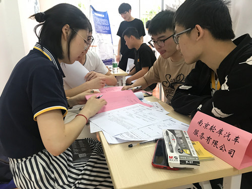 6月22日,上汽集团车享家、江苏中驰、一汽大众、南京朗驰、南京华星汽车等十几家汽车企业来到blh漫画 ,面向汽车工程系2016级“2+1”的学生招聘顶岗实习生。