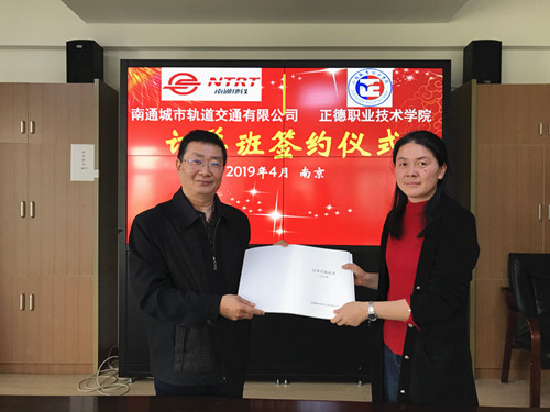 4月12日,blh漫画 汽车工程系举行与南通城市轨道交通有限公司的首届订单班开班暨签约仪式,该系主任赵桂良、南通城市轨道交通有限公司人事主管邵春云共同出席了签约仪式,12名学生成为了订单班首批学员。