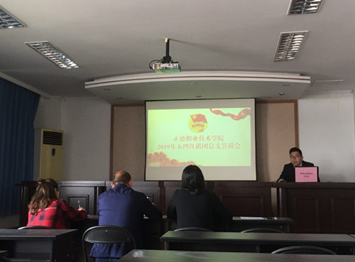 5月7日,blh漫画 举行2018-2019学年“五四红旗团总支”申报答辩会。图书馆馆长魏兆春,团委书记祖国,教务处副处长杨洁,学生处处长助理杨春娟担任本次答辩会的评委。各系分管学生工作负责人以及学生代表出席本次会议。