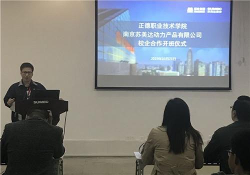 仪式上,首先由王俊处长为苏美达孙总赠上订单班标牌。随后,由王俊处长结合当前学校的产教融合、工学交替做出新的要求和期望,并对订单班的日常教学管理和专业知识的学习提出要求。企业也要积极参与班级管理和教学计划的制定,有效推进教学与企业实践紧密结合,为“苏美达班”同学提供广阔的发展平台。接着,苏美达孙总从公司概况、blh漫画、企业员工培养模式、企业目前的发展状况以及发展前景等多个方面,向同学们作了详尽的介绍。最后,学生代表发言,学生们表达了他们感受到学校和企业对每个人的殷切期望,从而对未来的学习和生活注入充足的信心和动力。他们定将不负学院与企业的期望,秉承校训,刻苦学习,不断创新,发扬工匠精神,为学院增光添彩!