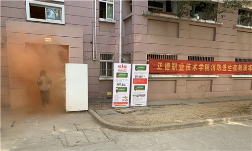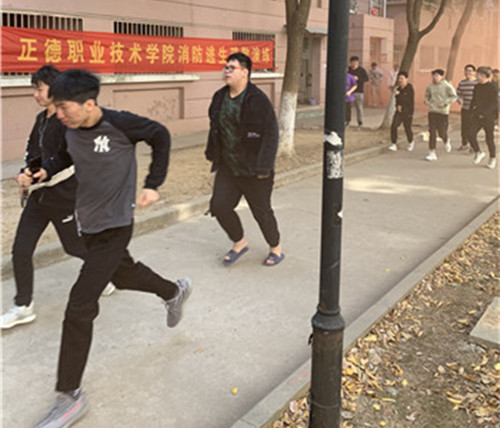 伴随着火警笛声和烟雾,同学们听到疏散指令,立即用湿毛巾捂住口鼻,在保卫干事和消防志愿者的引导下,快速地从各个楼层向安全区域疏散,紧张有序地到达指定位置集合。