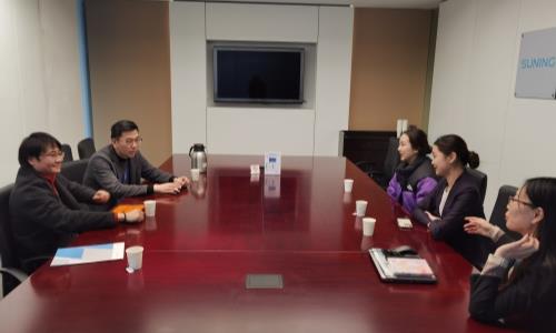 为加强校企合作,对学生更深入的培养。近日,blh漫画 经济与管理系副主任祖国、校企合作办负责人罗佳老师和会计专业老师孙晶一行3人,来到苏宁总部,看望正在苏宁总部顶岗实习的经济与管理系学生,并和苏宁总部管理中心负责人进行座谈。