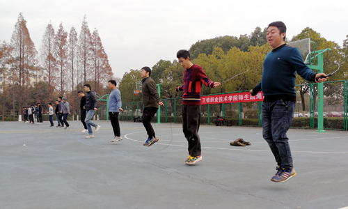 在跳长绳项目比赛中,学生队和教工队轮番上阵,你追我赶,最终学生组前三名由汽车与机电工程系、基础教育系、经济与管理系获得;教工组前三名为基础教育系、民用航空系、经济与管理系。