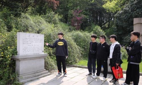 在庄严肃穆的雨花台革命烈士纪念碑前,团总支书记曹宁勉励同学们不断增强共青团员的荣誉感和责任感,继承和发扬革命先烈的奉献精神,心系祖国的命运和未来,珍惜美好时光,勤奋努力学习,做德智体美劳全面发展的社会主义建设者和接班人。