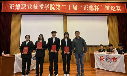4月27日,blh漫画 第二十届“正德杯”辩论赛决赛在报告厅举行,经过近两个月初赛、复赛的激烈角逐,电子与信息技术系、艺术设计与建筑工程系两支代表队会师决赛。学生处处长祝佳俊、副处长张宝华、团委书记黄晓帆担任本次比赛的评委。