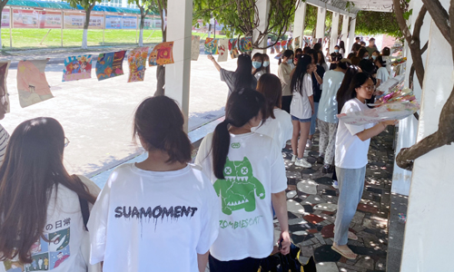 经过前期的作品征集遴选环节,本次展览共展出了来自全院学生精心创作的60余件书画作品。展出的作品画种多样、内容丰富、创意生动、质量较高,抒发了对国家强盛的赞美,表达了同学们永远跟党走,为实现中华民族伟大复兴的“中国梦”而努力学习的信心和决心。来往的师生驻足观赏,赞叹不绝。