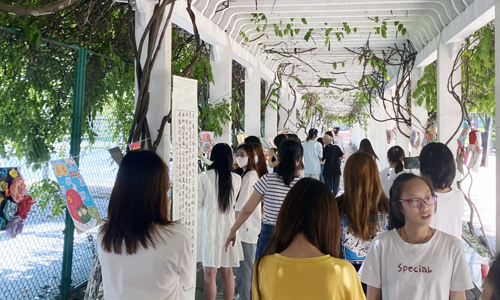 6月21日,基础教育系在学院紫藤长廊举办了“与党同心,与党同行”——庆祝建党100周年书画作品展。