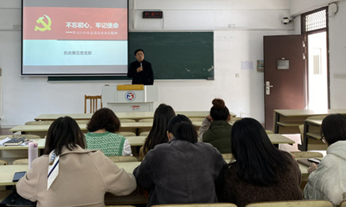随后,祝佳俊以“不忘记初心,牢记使命”为主题,以《中共中央关于党的百年奋斗重大成就和历史经验的决议》解读为切入点,结合文献、图片等多样形式,循序渐进地对“党史上的三份《决议》为什么出台”“三份《决议》折射出党什么样的政治品格”“六中全会《决议》释放了怎么样的信号”等问题进行了深刻诠释,向全体党员解读了十九届六中全会的现实意义和历史意义。他鼓励全体同志增强政治意识、大局意识、核心意识和服务意识,切实为全体师生办实事、办好事,学会用好各类平台,持续引领支部成员和广大青年学习开展全会精神的领学、促学、联学、践学、督学、比学,营造良好学习氛围,将全会精神传递得更深更广,不断掀起学习宣传贯彻全会精神的热潮,不断加强自身学习,用实际行动贯彻落实全会精神。