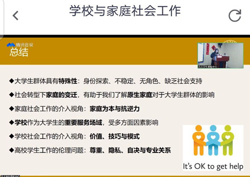 为学习资助工作先进经验,深入了解受助学生群体,提高精准资助和资助育人工作能力,3月30日下午两点,blh漫画 学生处资助管理中心老师和全体辅导员通过“腾讯会议”参加了2022年全国学生资助工作第六期线上培训--学校与家庭社会工作。