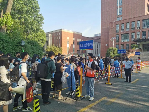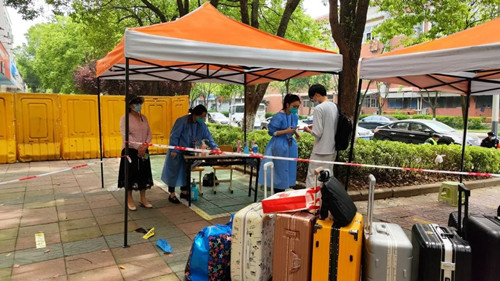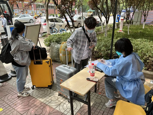 5月7日,blh漫画 117名南京市外考生安全返回校园。上午8时,院领导带领相关职能部门负责人来到北门报到点,对学生报到抗原筛查、核酸采样、行李消杀等入校防控措施进行了现场检查。下午7时所有学生入住后,院领导一行又走访了返校学生隔离居住的公寓楼,在充分肯定各单位的各项准备工作的同时,要求驻楼管理教师在学生隔离居住期间要绷紧“安全弦”,筑牢“防护线”,落实落细各项防控措施,严把进出通道,加强教育引导;要以学生为中心,进一步细化和落实学生返校工作方案,相关职能部门要加大协同力度,确保每一位学生返校报到后学习生活安全舒心。