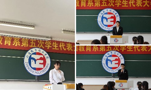 基础教育系第五次学代会在雄伟的国歌声中拉开序幕。首先,兄弟院系学生会代表殷筱雯和院学生会代表李飞分别致辞,表达了院团委和兄弟院系对我系学生会工作的大力支持,对我系既是鼓励也是鞭策,我系更应自觉肩负起新时代赋予我们的历史责任,不断开创我系学生工作新局面。大会秘书长魏玮在讲话中表示,希望我系学生组织在院团委和系党支部的领导下,继续开拓进取、奋发有为,与时代共奋进,与学院共发展。