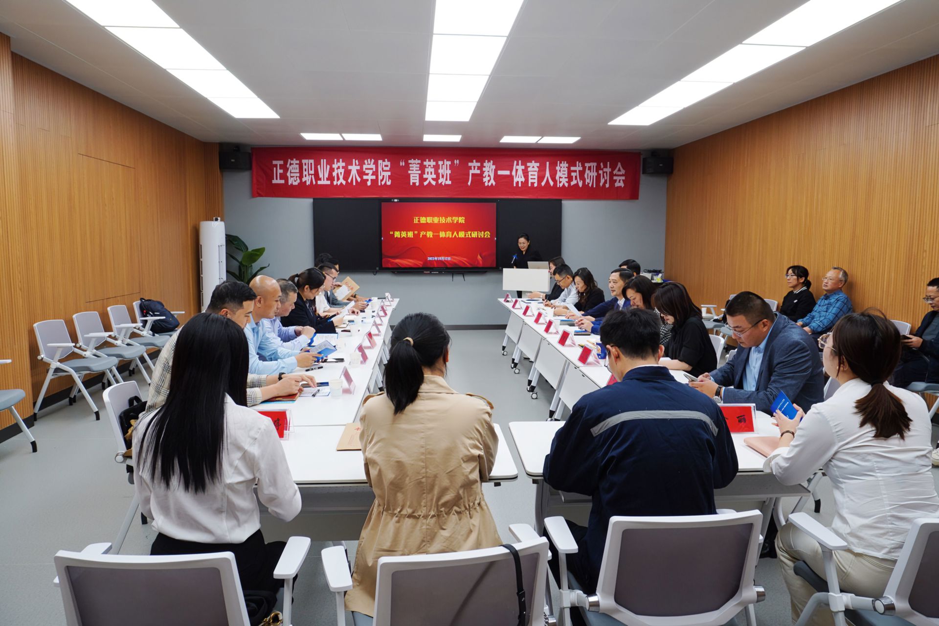 10月12日下午,我院举办“菁英班”产教一体育人模式研讨会。来自国防军工、智能制造、建筑装饰、计算机工程四大行业的8家领先企业的13名代表参会,副院长江爱华、教务处以及各系部主任、教师代表齐聚一堂,共同探讨新时代下职业教育的创新路径与实践经验。