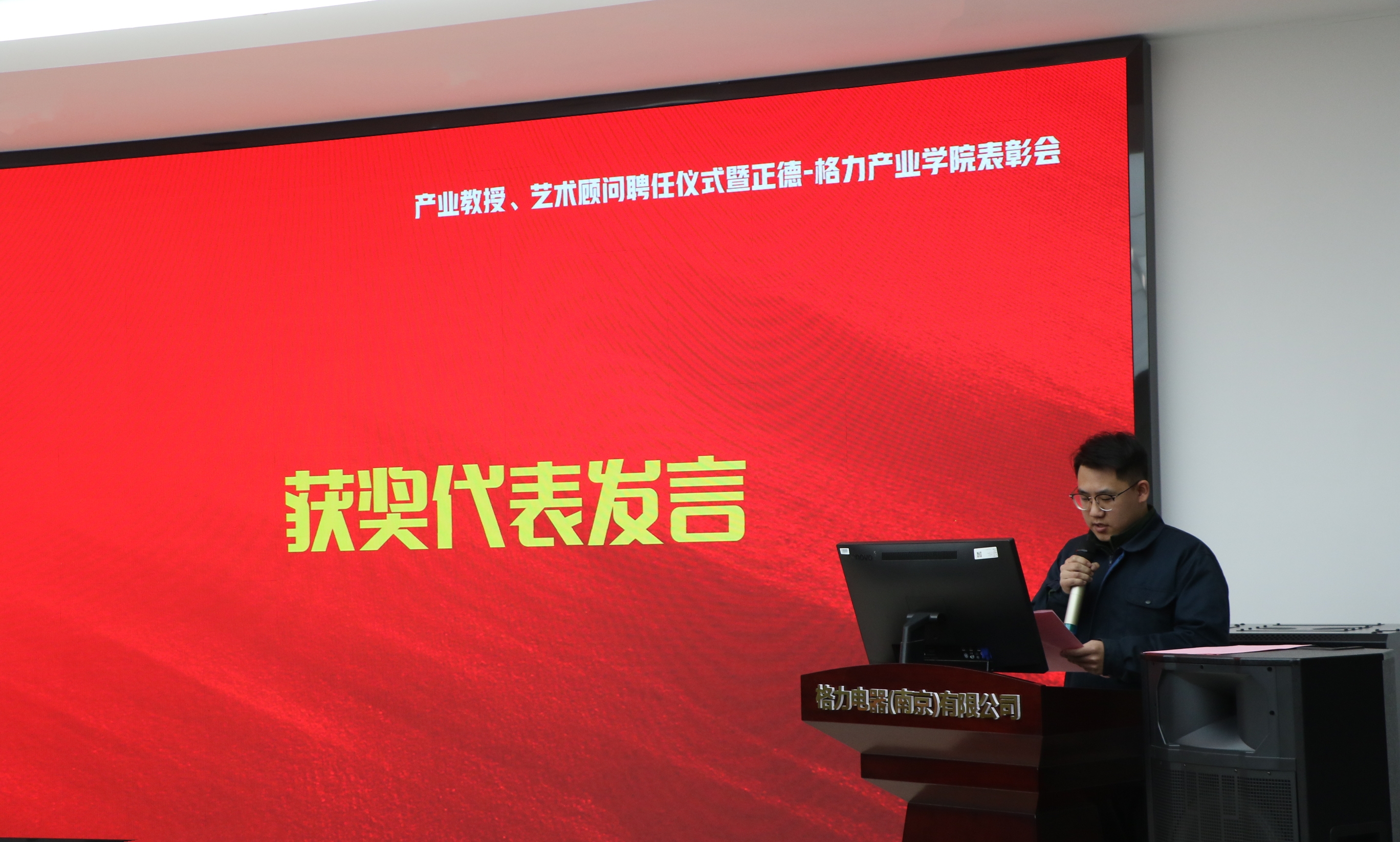 “突出贡献奖”获奖代表、电子与信息技术系副主任(主持工作)刘佳表示,格力电器开放包容、严谨务实的blh漫画是校企合作顺利落实推进的重要基础,在产业学院成长的两年中,双方在人才培养、专业建设、课程建设等方面取得显著成效,希望在校企共同努力下尽快把正德-格力产业学院建设成为集人才培养、技术创新、社会服务功能于一体的现代产业学院。“优秀实习生”获奖代表胡伟感谢学校和企业提供的发展机遇和优质平台,结合自己的工作岗位和职责,分享了其在格力公司岗位实习期间的收获和进步。